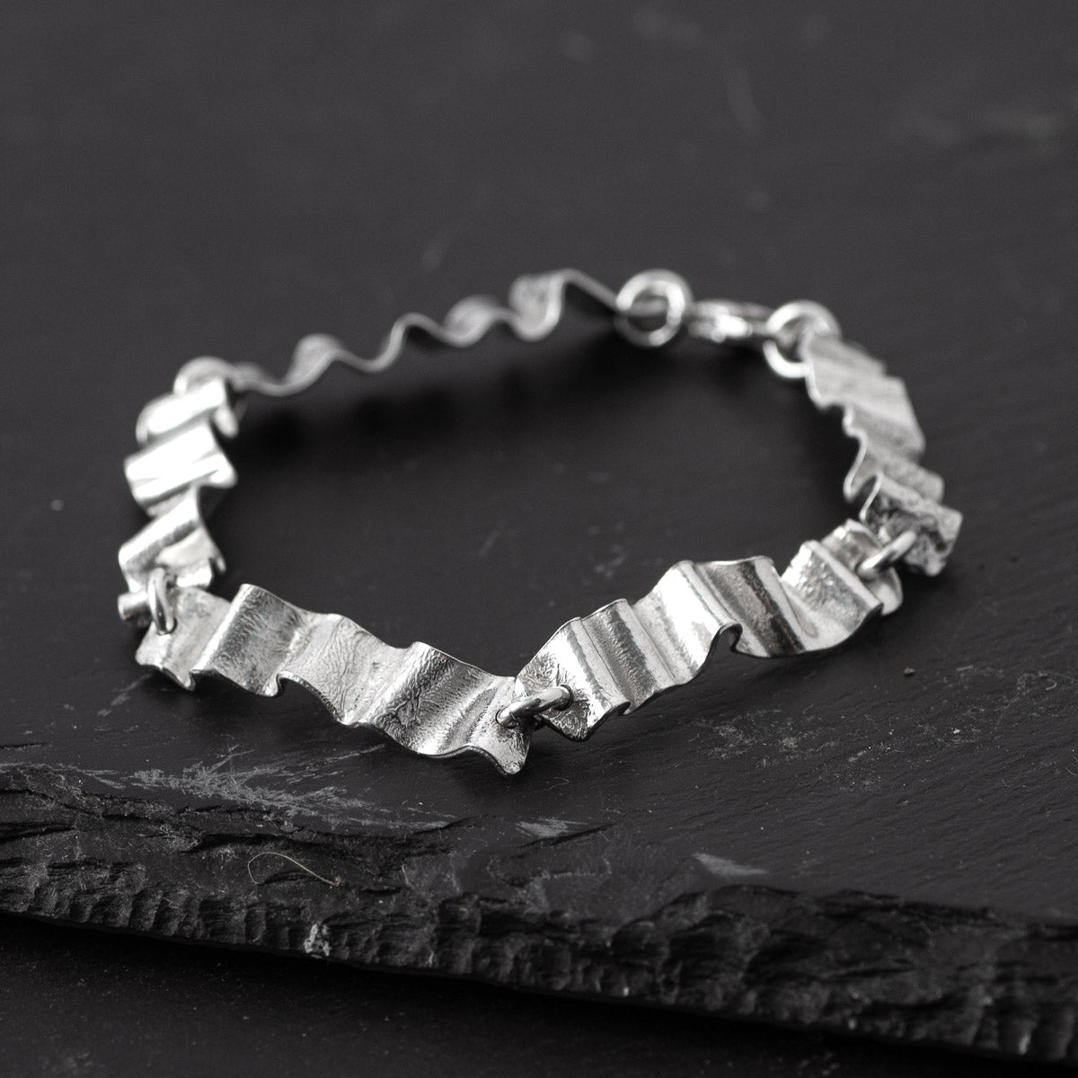 This collection of tactile decorative silver rectangular jewellery by Carol James (Silverfish...