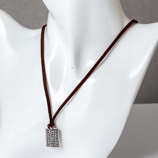 Bedolina Map Rock Art Oxidised Silver Pendant On Leather by Silverfish