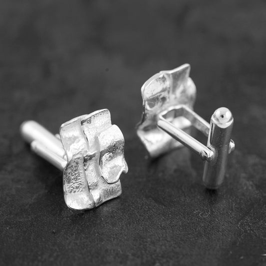 Patchwork Ribbon Silver Cufflinks by Silverfish