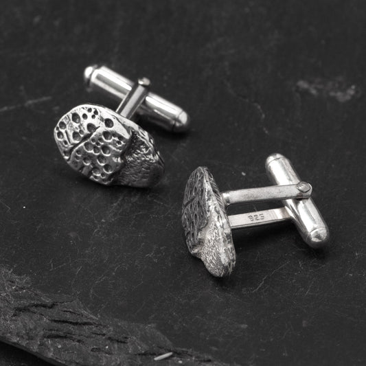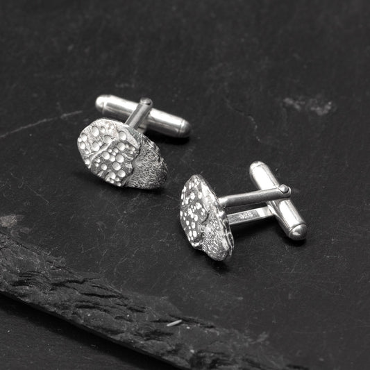 Pebble Silver Cufflinks - Large Textured by Silverfish