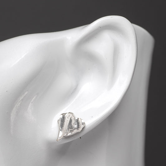 Ribbon Heart Silver Stud Earrings - Small by Silverfish
