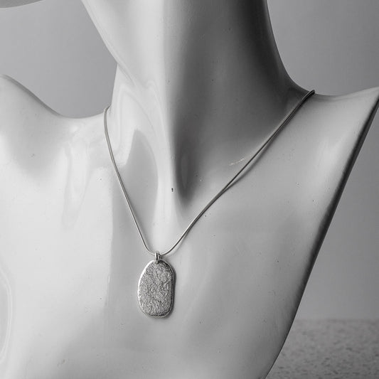 Pebble Silver Pendant - Medium Textured by Silverfish