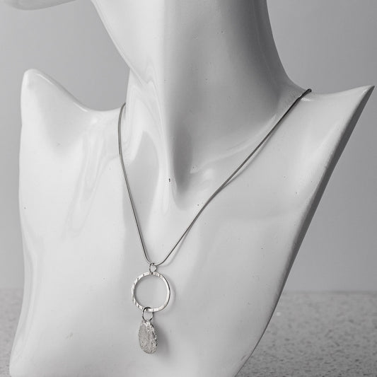 Pebble & Circle Silver Pendant - Medium Textured by Silverfish