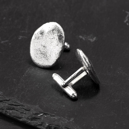 Pebble Silver Cufflinks - Large Textured by Silverfish