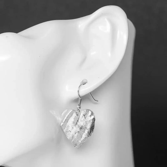 Ribbon Heart Silver Drop Earrings - Angled - Small by Silverfish