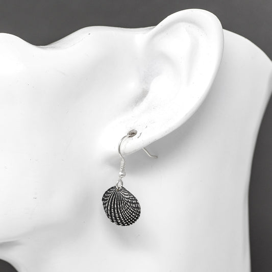 Thai Cockle Drop Earrings - Oxidised Silver by Silverfish