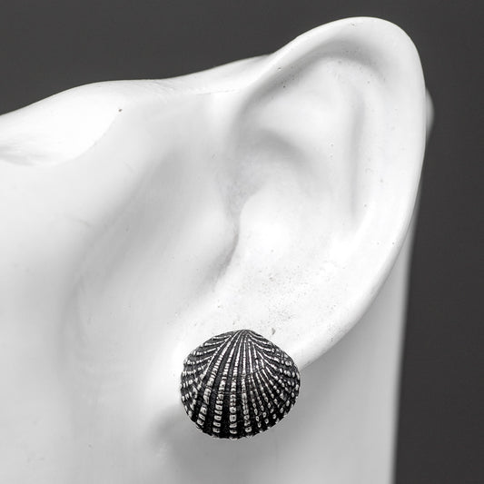 Thai Cockle Stud Earrings - Oxidised Silver by Silverfish