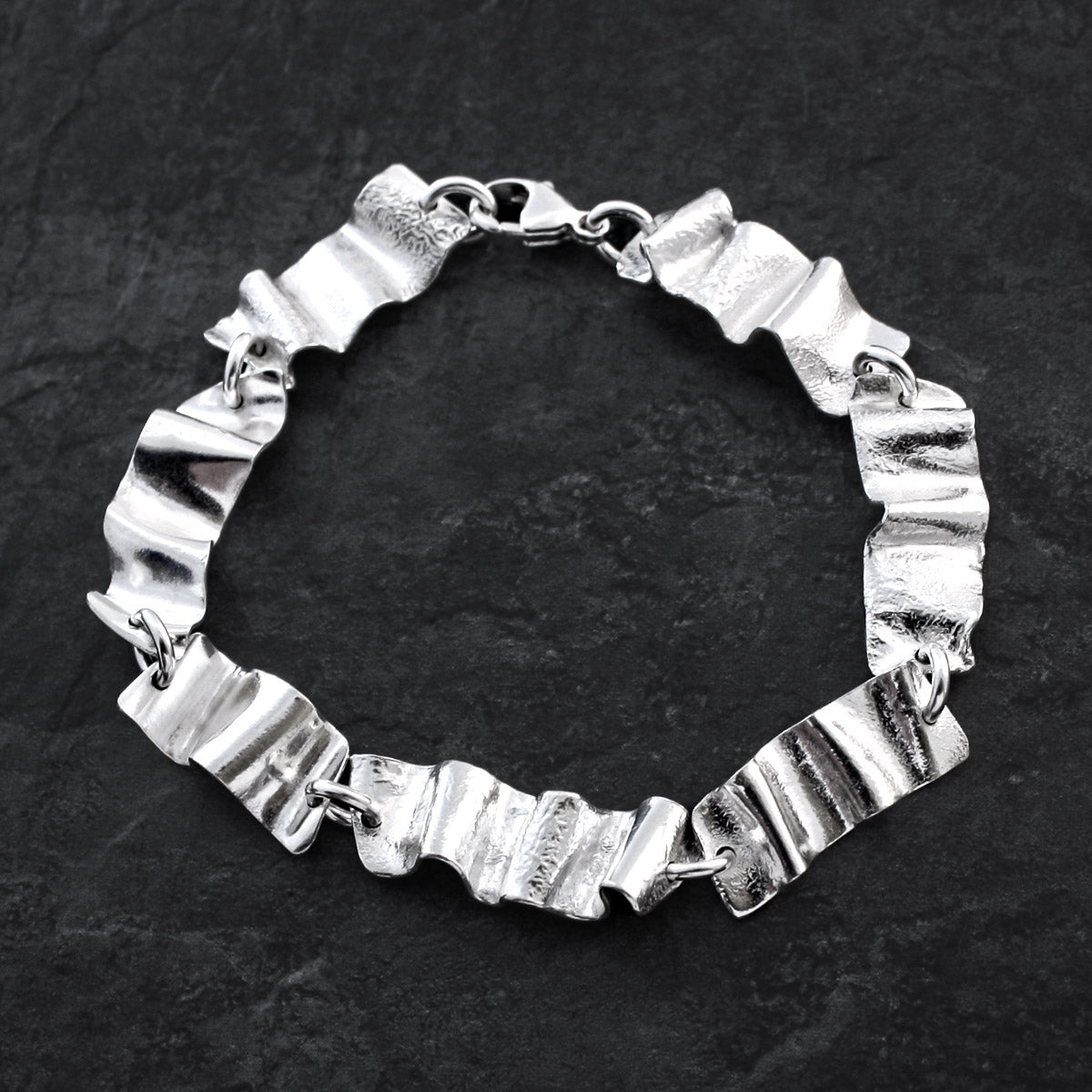Handcrafted in her distinctive contemporary and organic style, Carol poured her heart into every piece of jewellery. Predominantly working in silver and gold, she continually experimented with decorative techniques, exploring the captivating interplay of light and texture and the effect of heat on the metals’ surface.